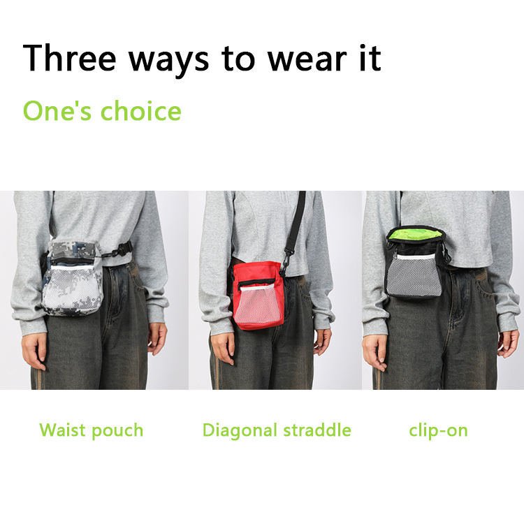 The dog treats training pouch with 4 carrying variants, a clip, and a loop for use as a bum bag, shoulder bag, hip bag, and belt bag. You can choose the most comfortable and convenient way to wear it according to your preferences and actual situation.