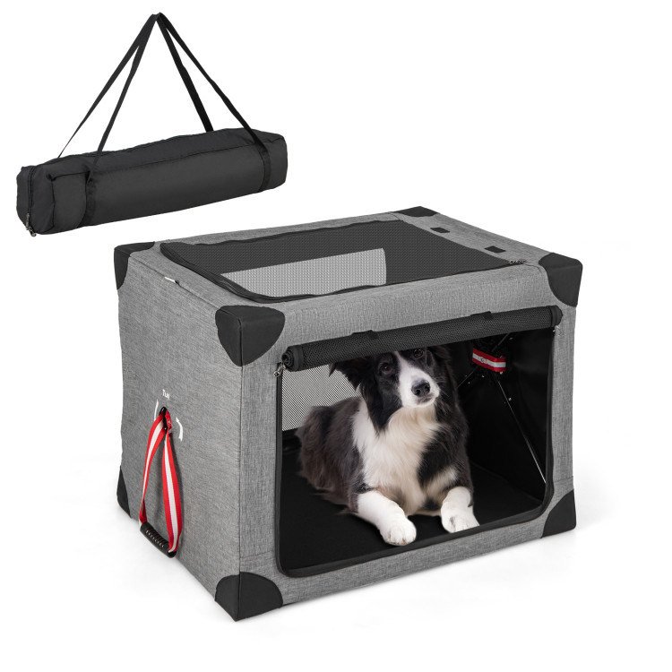 5.Convenient Storage and Portability: When folded, the portable dog crate can be stored in an included bag for storage. Carry it over your shoulder, practical uses in different occasions become a reality. Finally, please measure your pet first and make sure the crate is suitable for your pet before purchase.