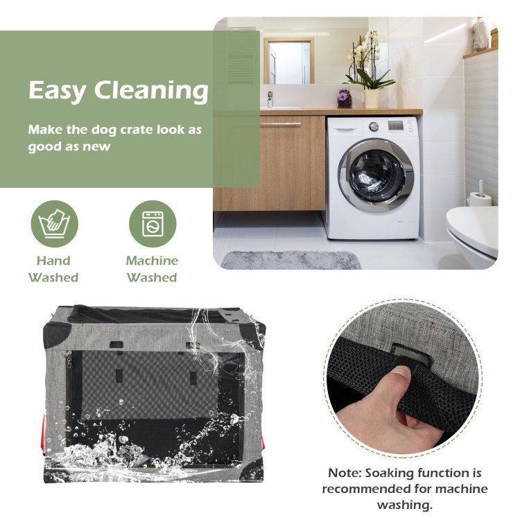 2.Durable Cover and Removable Pad: The dog crate has a washable, wear resistant and non-fading cover, made of nylon and oxford. Also, it comes with a removable pad, filled with non-deforming resin cotton for soft touch, so pets can get relaxed in the journey. If they urinate accidentally, don't be upset. The pad has an oxford exterior which is waterproof for easy cleaning and keeps pets from cold.
