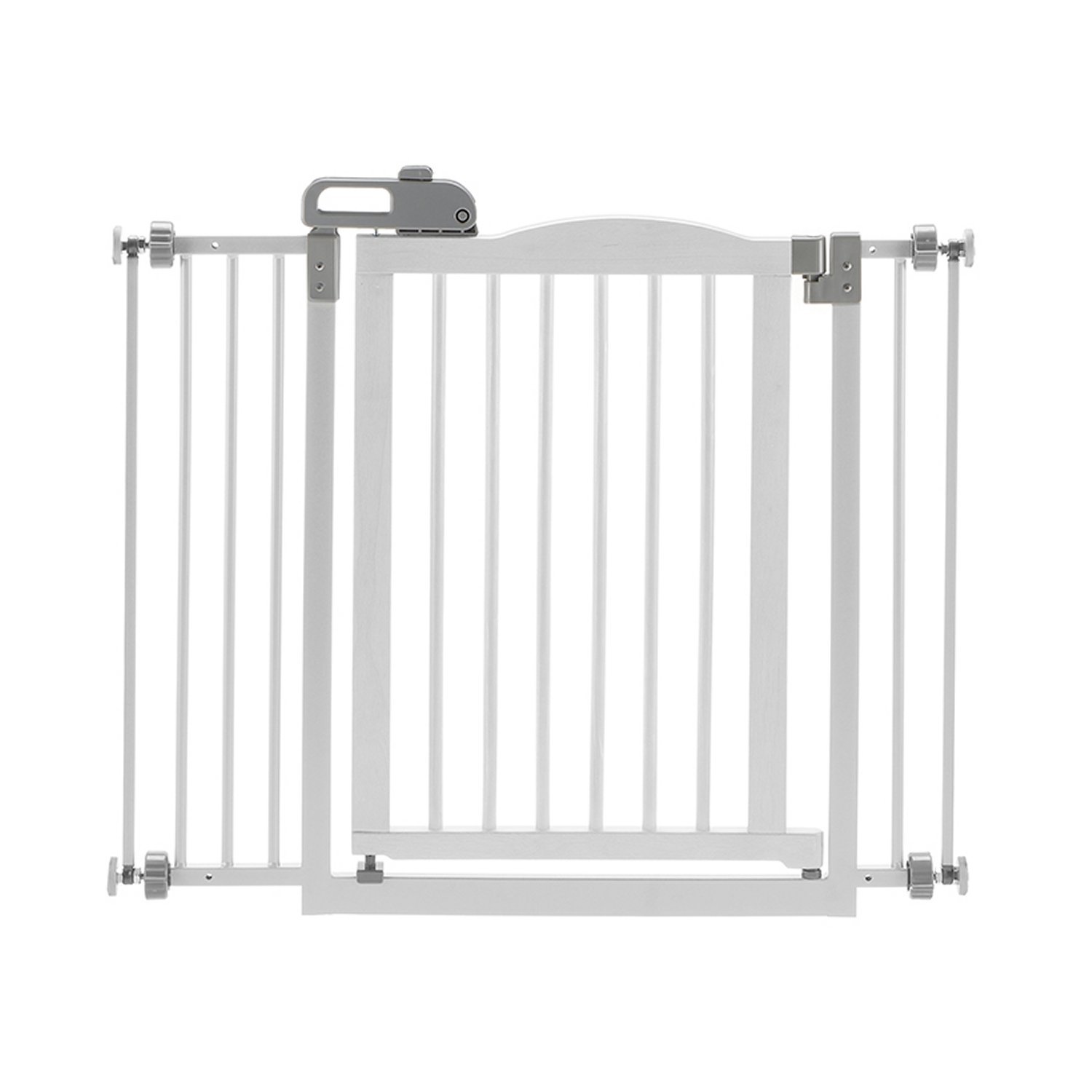 One-Touch Gate II is a tension-mount gate designed to stay firmly in place without damaging wall surfaces. The door handle allows you to open the wooden door in either direction with the touch of one button! The Richell One Touch II comes in Autumn Matte or Origami White to complement your home.