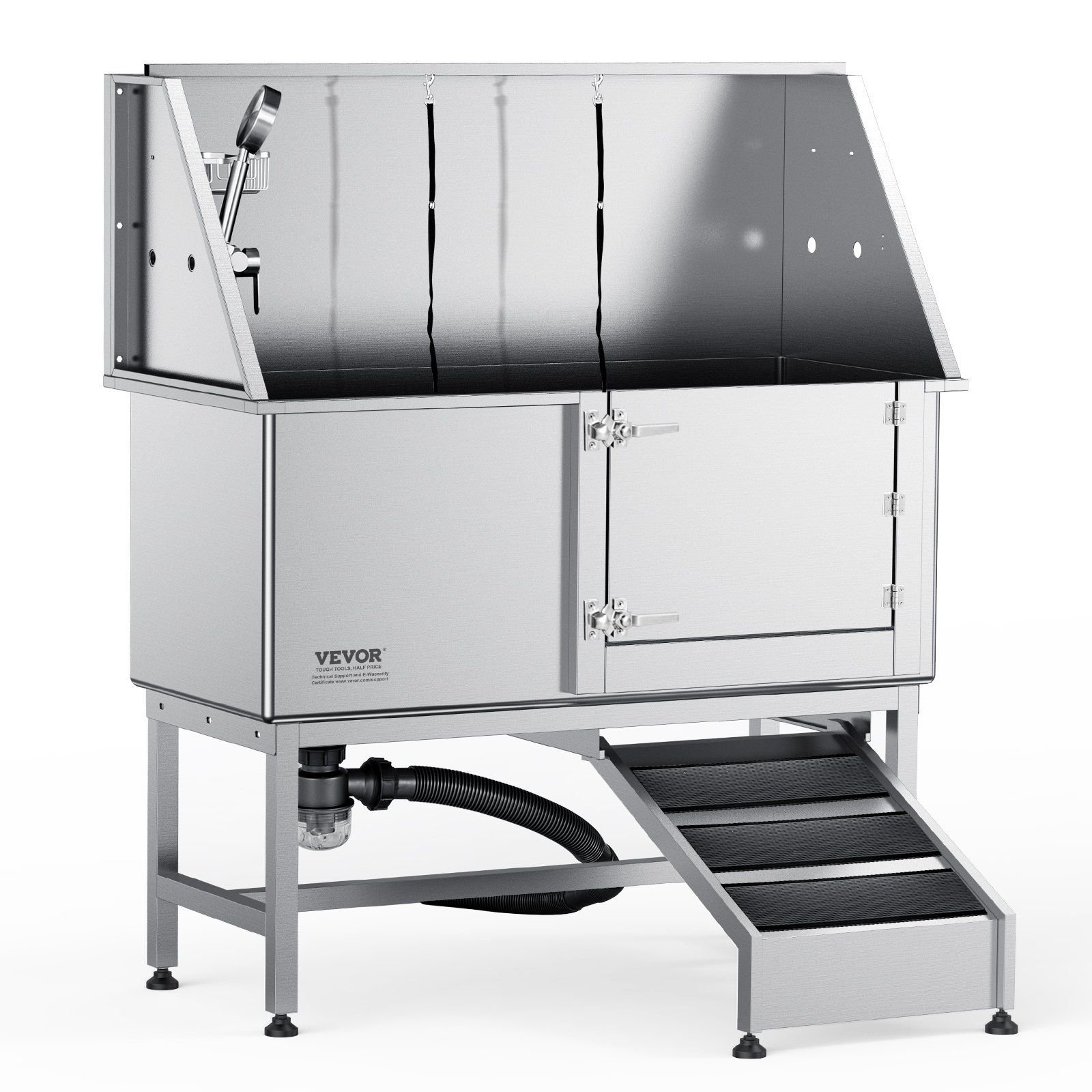 Home > VEVOR 50" Pet Dog Bathing Station w/Ramp, Professional Stainless Steel Dog Grooming Tub w/ Soap Box, Faucet,Rich Accessory, Dog Bathtub for Large,Medi