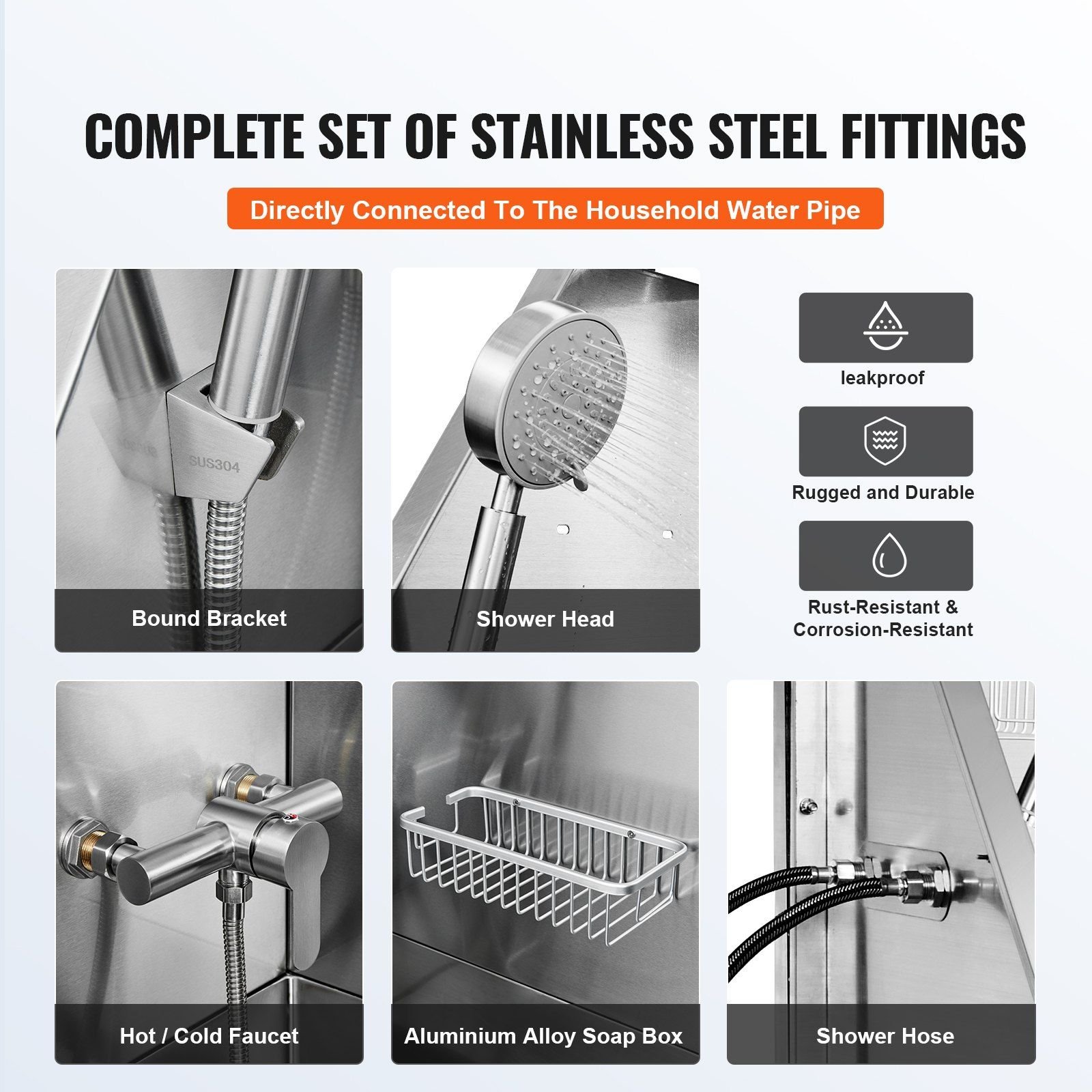5.Durable Stainless Steel Accessories: Our product includes a stainless steel showerhead, faucet, and bracket, all of which are rust-resistant and built to last. Additionally, we've included an aluminum alloy soapbox for long-term storage of bathing products, ensuring durability.
