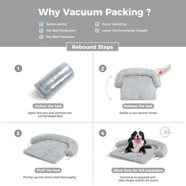 [Innovative Modular Design]: This dog bed can be adapted as your pet grows. 1 Roll it up into a snug donut bed for a small puppy, and 2 unfold it into a spacious sofa bed as your dog grows. 3 Expandable for Large Dogs: For grown dogs or for Human+2 dogs, simply purchase another unit and splice them together to create a super large kennel, providing ample space for your pet's comfort.