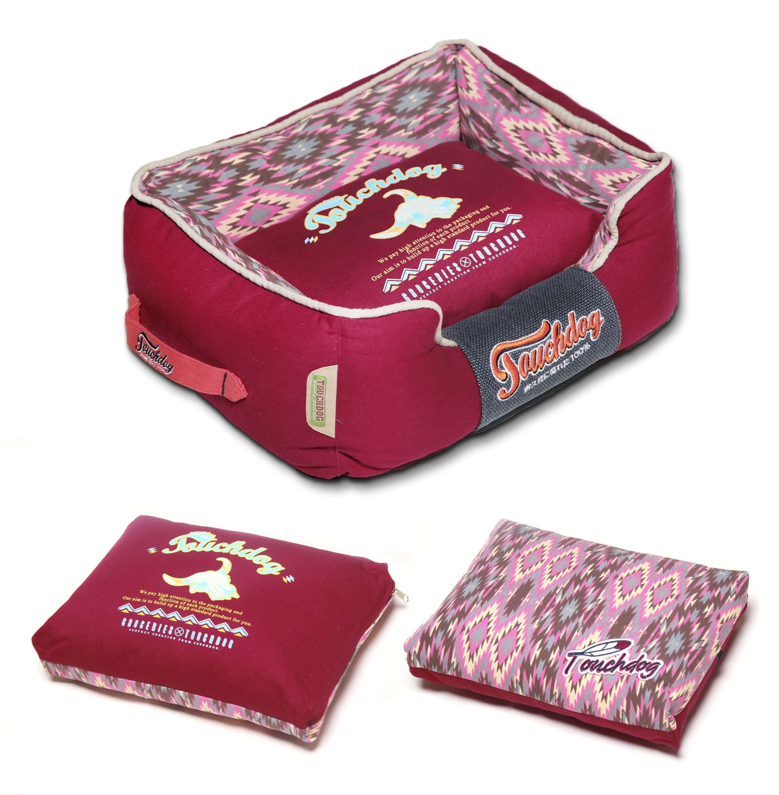 Touchdog 70's Vintage-Tribal Throwback Diamond Patterned Ultra-Plush Rectangular-Boxed Dog Bed is composed of a Cotton-Polyester Outer shell with a Reversible and Removable Polyester inner dog cushion. Features a trendy 1970's Diamond-like design pattern on the outside with a beautiful Vintage print design on the cushion with the Touchdog Embroidered stamp of perfection on the frontal lip. Composed of a Higher-Grade level of Poly-Fill for superior plush. Features a Nylon side handle for ease of mobility when carrying. Touchdog, the leading Premium Pet Brand of Tomorrow. Available in Multiple Colors.