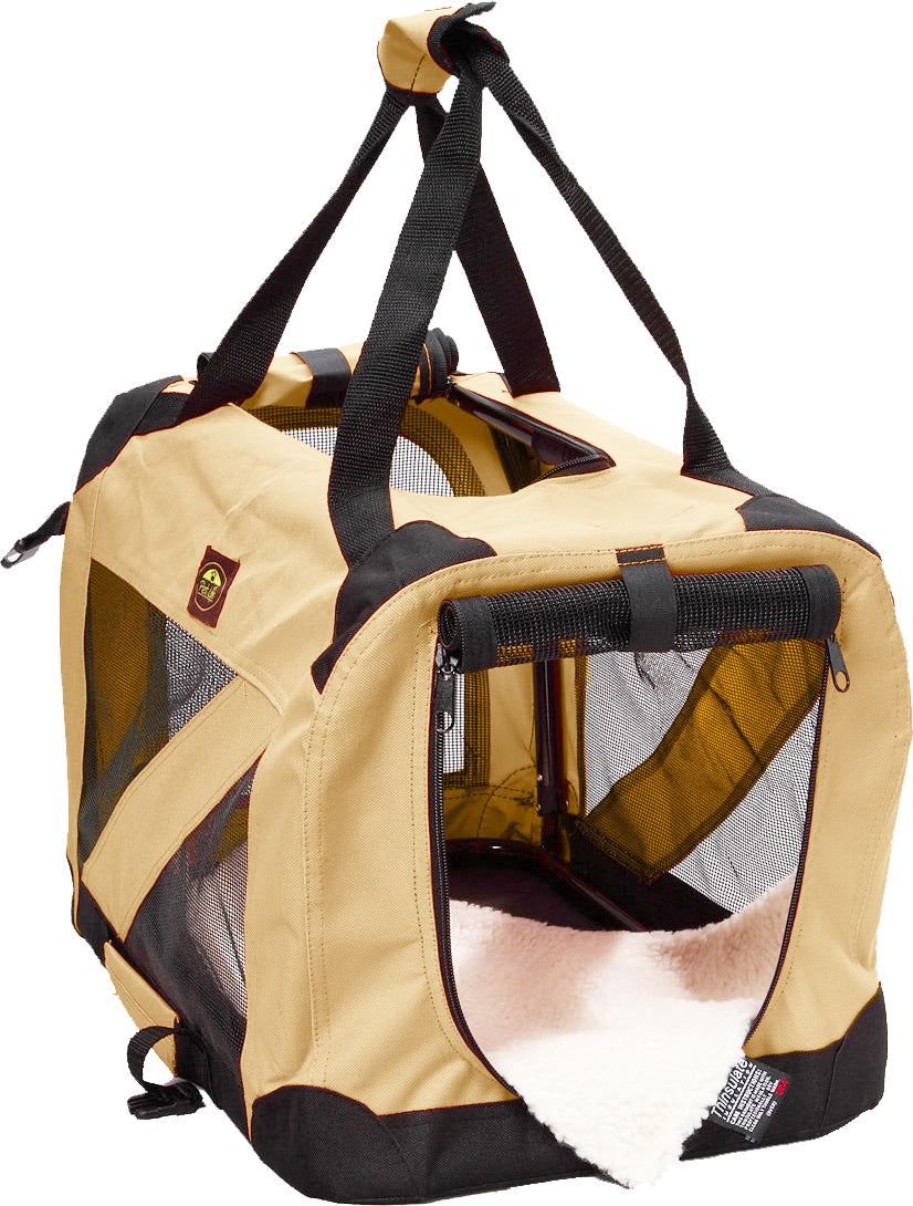 The Pet Life Folding Zippered 360° VISTA VIEW Collapsible Soft Folding Dog Crate Carrier Features a PVC Frame for Added Stability. This Pet Crate mechanically hinges closed and buckles in place. After Folded it can be easily transported around via the Incorporated Side Handle. This Dog Crate Contains Thinsulate Thermal Heat Retention Technology incorporated within the Scratch-Resistant Nylon/Sherpa Padding. Composed of Ballistic Nylon this Pet Crate is Built-To-Last. Included within the inside of the Pet Carrier is a Built-In Leash Holder for added Safety and Protection. Collapses to 4 inches narrow.