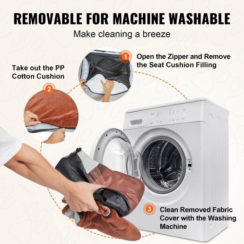 Designed for convenience, this puppy car seat has a fully removable cover and built-in sliding zipper.