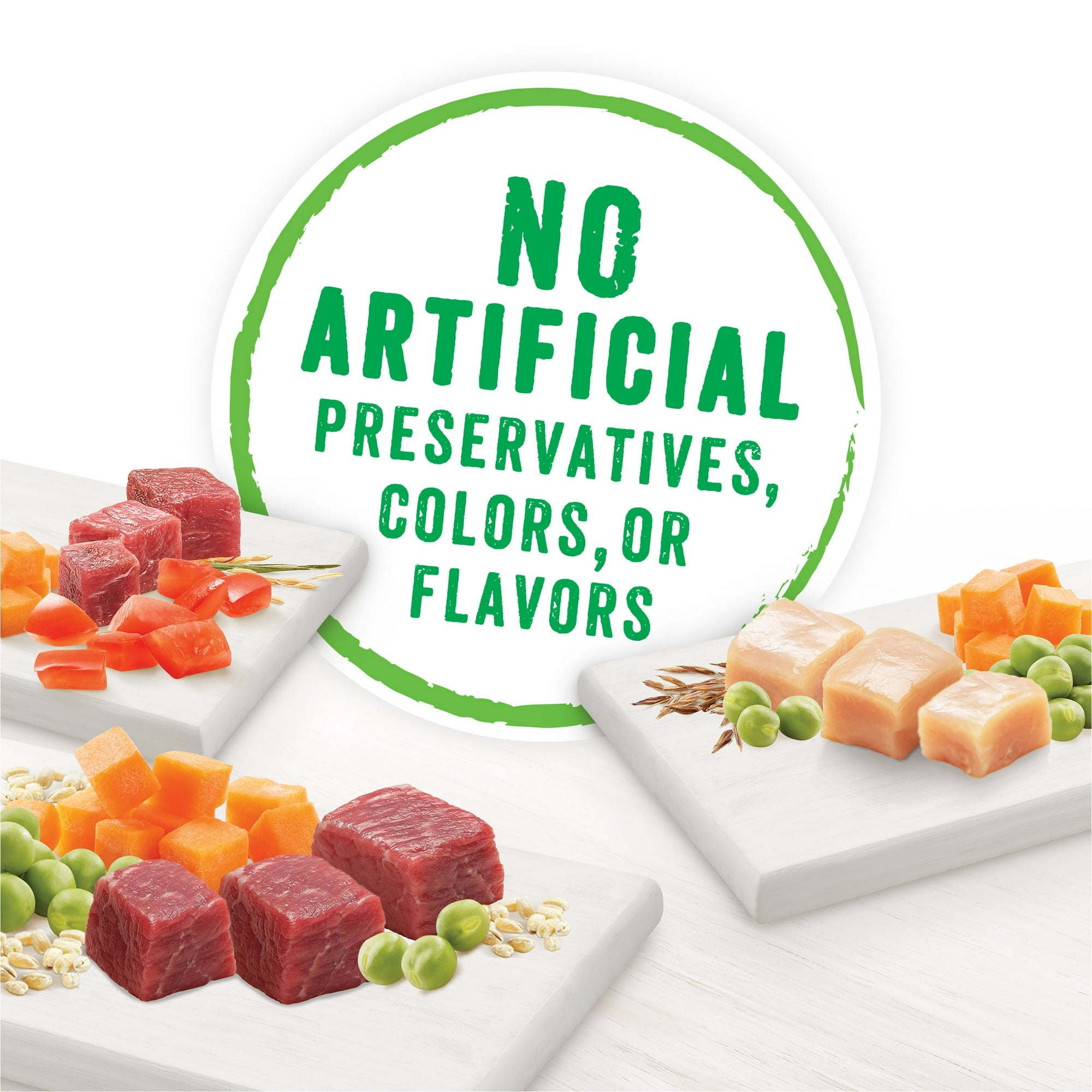 12-count Beneful Chopped Blends dog food variety pack is made with real chicken, beef or lamb and inclusions of real vegetables and grains you can see