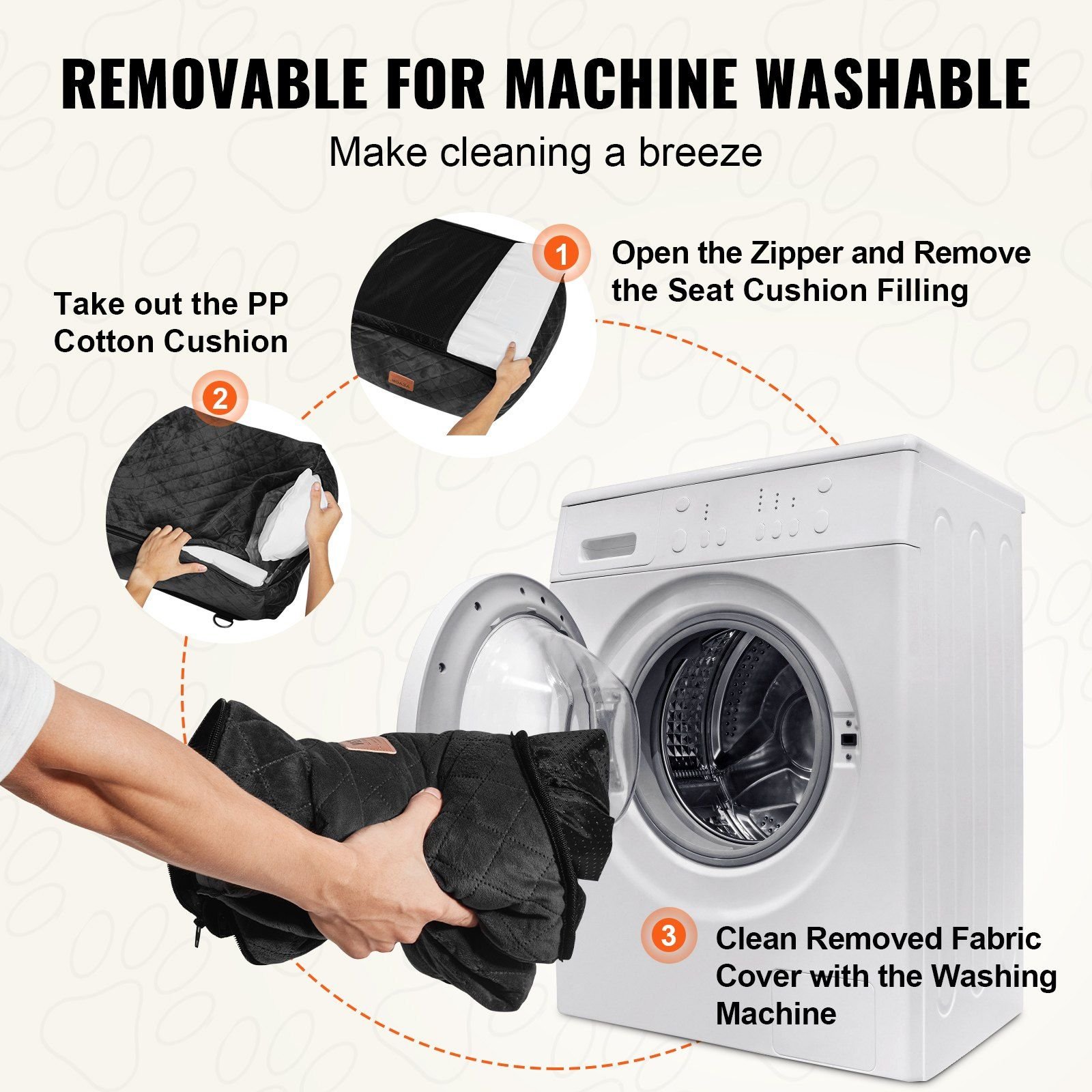 4.Easy to Clean: Designed for convenience, this puppy car seat has a fully removable cover and built-in sliding zipper. Take out the filling and the cover can be machine washed, making maintenance simple and hassle-free.